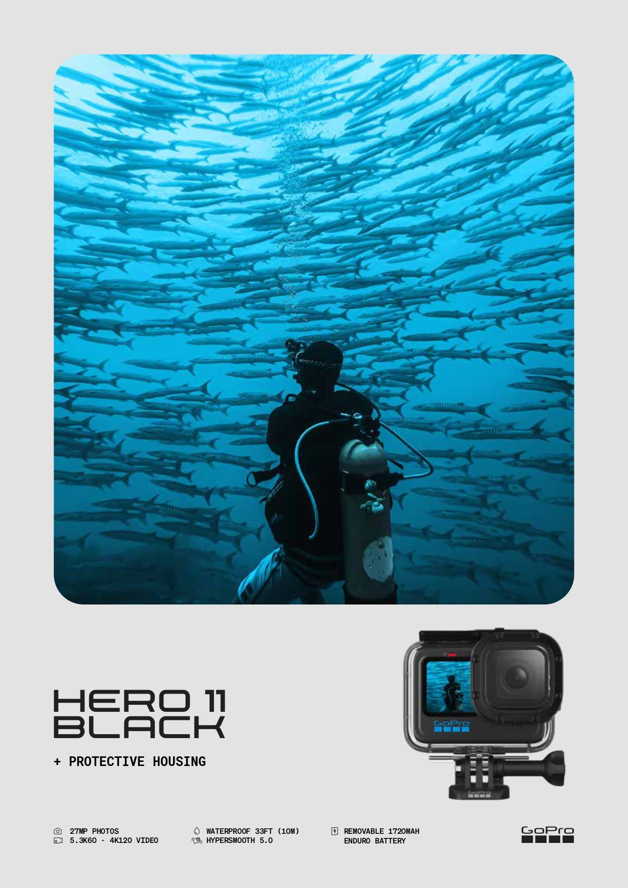 10 位元彩色影片、全新超寬「HyperView」視野、HyperSmooth 5.0 影像穩定功能、360 度全方位地平線鎖定與高效能 Enduro 電池