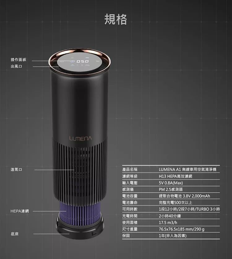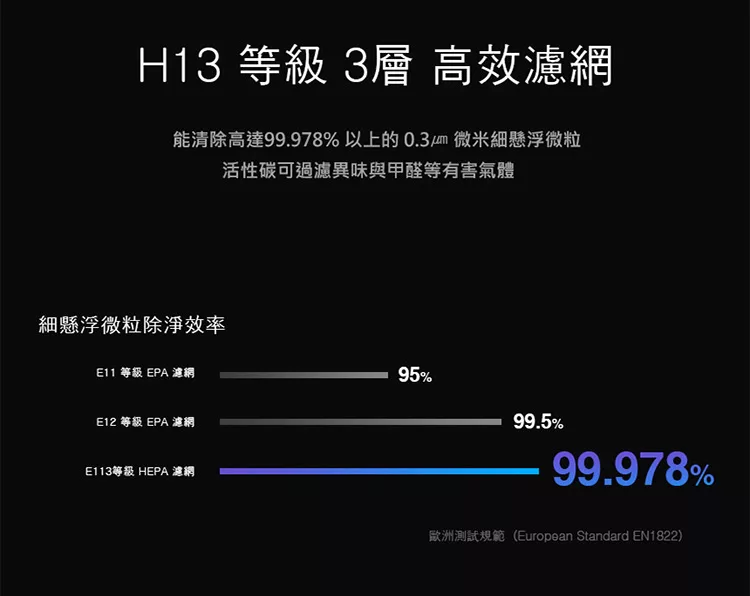濾網等級:H13 HEPA