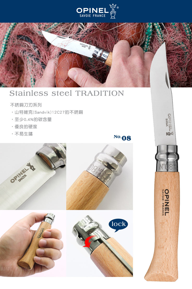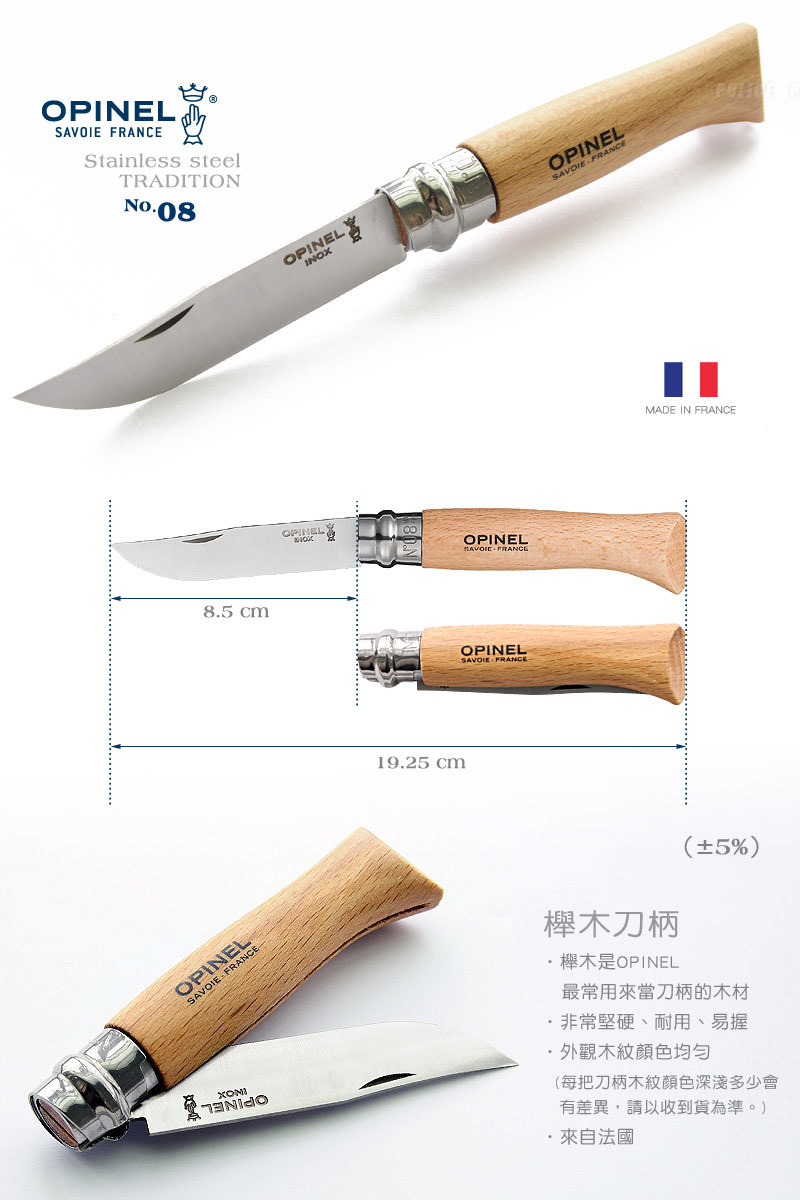 品名:OPINEL Stainless steel  TRADITION 法國刀不銹鋼系列(No.08 #OPI_123080)