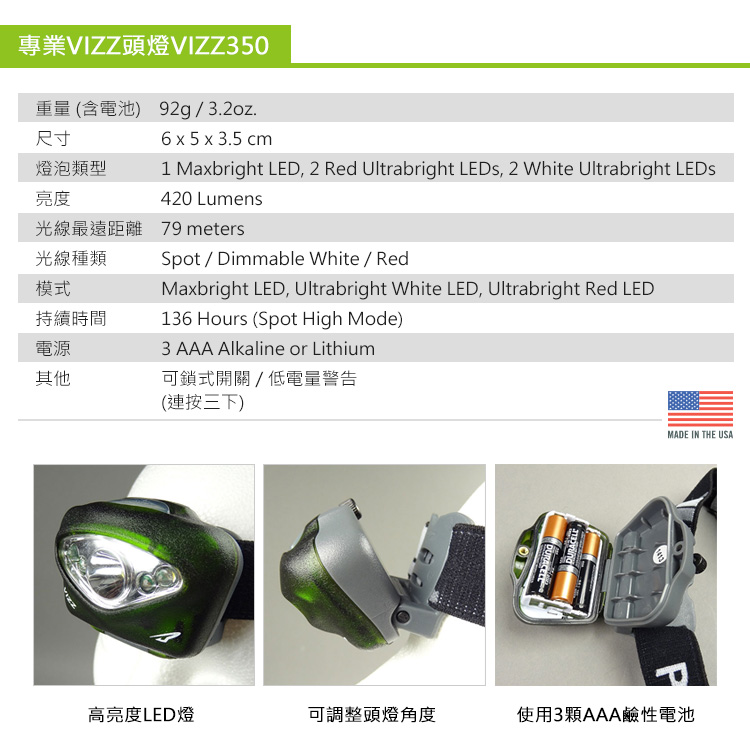 PrincetonTec|專業 VIZZ 頭燈 VIZZ350 (420流明)\黑色