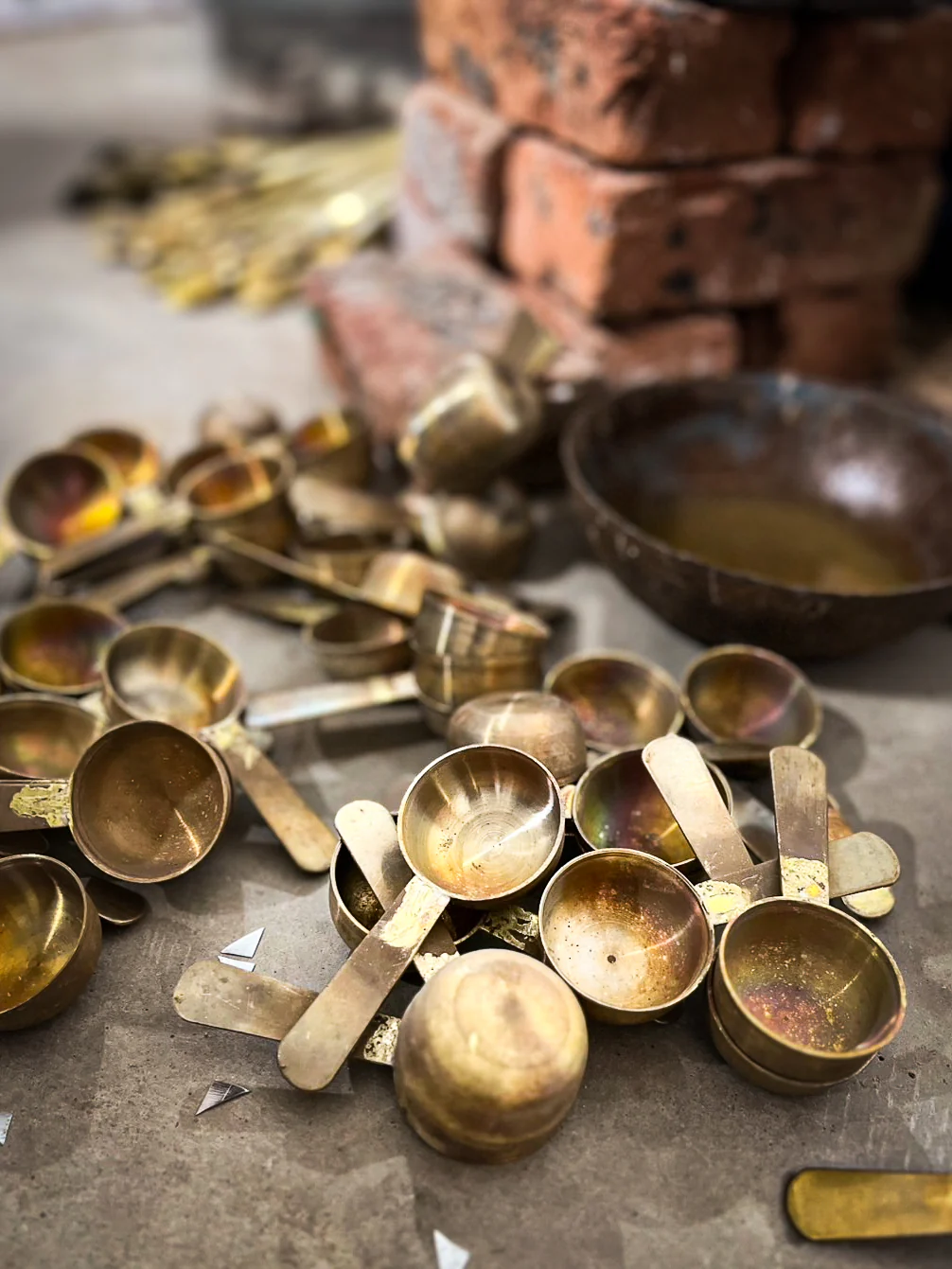 這款計量匙由印度職人一個個細心手工打造,展現出工藝品般的溫度與質感。黃銅特有的溫潤光澤,隨著使用時間逐漸產生迷人的經年變化,正是大量生產中難以體現的獨特魅力。